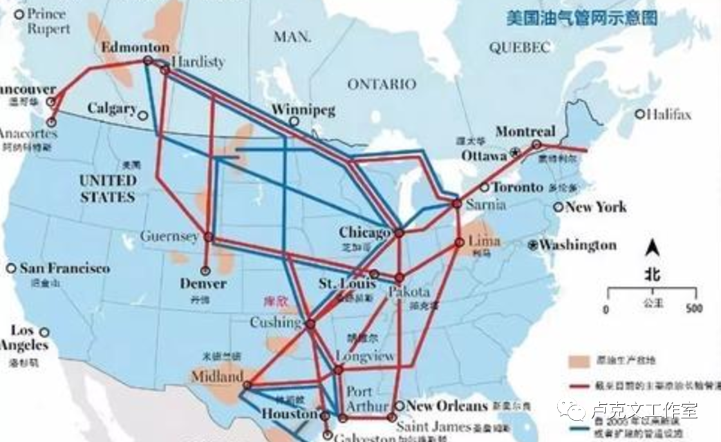库欣镇位于美国中西部奥克拉荷马州,1912年发现油田,当时32家石油公司跟50多家炼油厂来这挣钱,1940年时这里的油田挖完了,但是石油公司在这里留下来了大量运输管道和储存设备,美国人一看,闲着也是闲着,就把这些基础设施用来服务石油交割和运输。